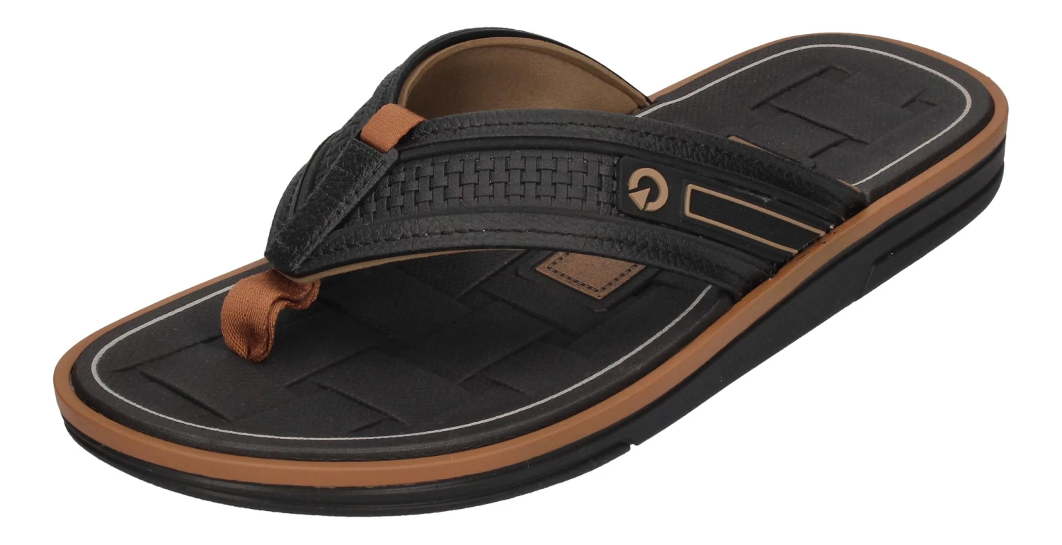 Die sportlichen Zehentrenner von Cartago, das Modell Lyon II Thong AD in schwarz mit beiger Zwischensohle und schwarzer Laufsohle, sind zu Lande und zu Wasser lässige Begleiter.