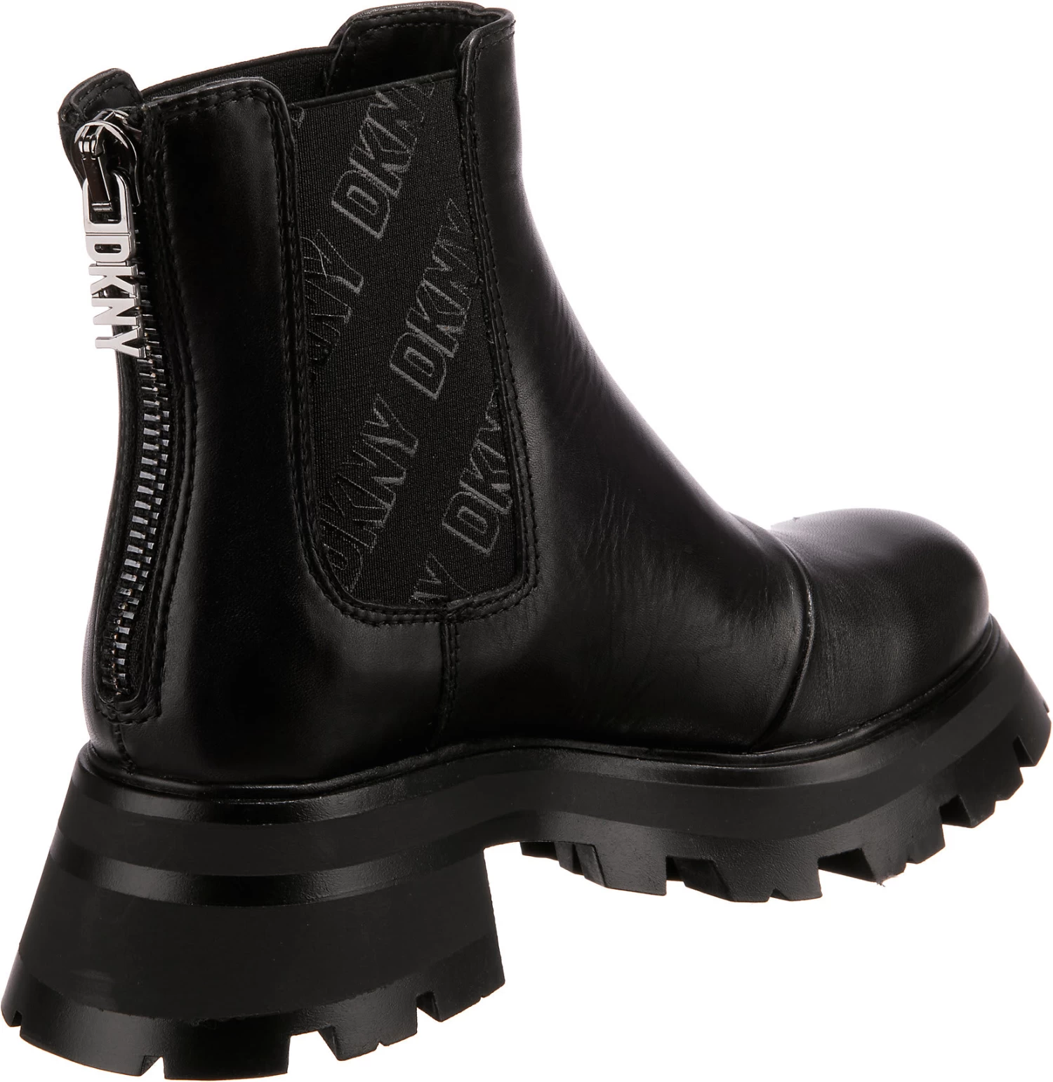 Ergänzen unterschiedliche Outfits: Die stilsicheren Chelsea Boots von der Marke DKNY. Der Blockabsatz erzeugt eine weitere modische Note. Diese Schuhe schließen per Reißverschluss. Das Obermaterial zeichnet sich durch das feine Leder aus. Das Futter aus Polyester ist angenehm anpassungsfähig.