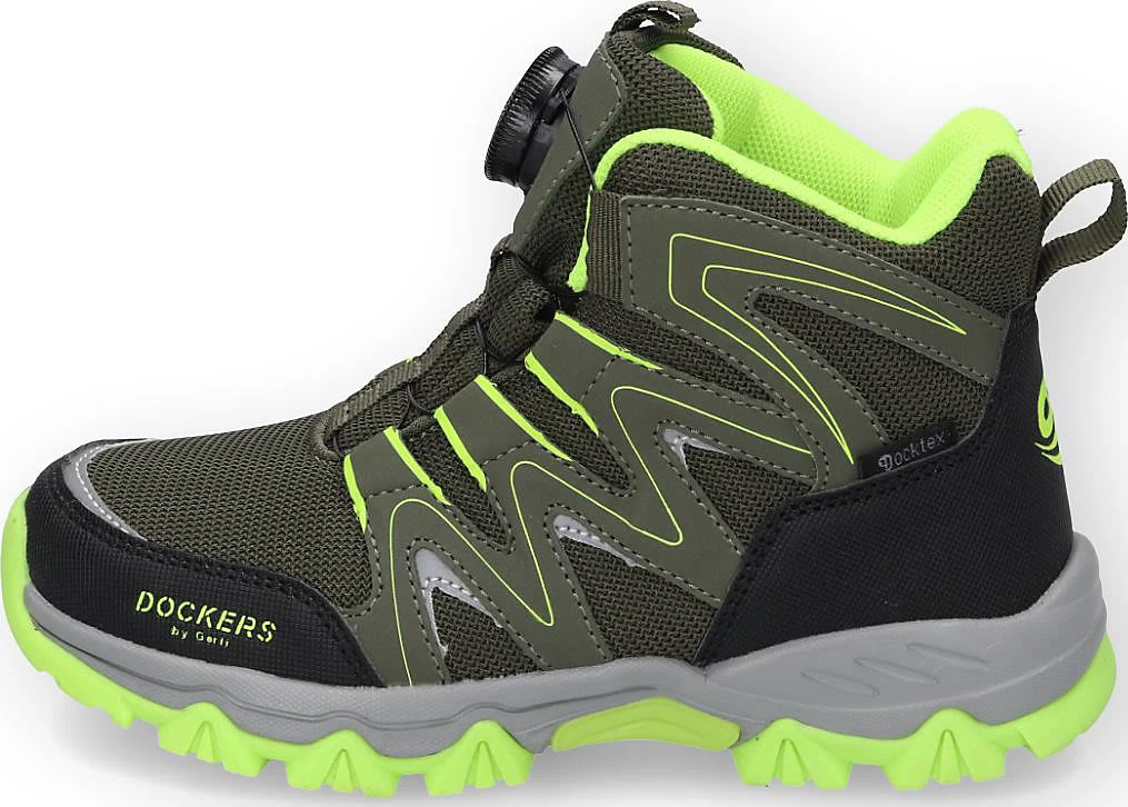 Mit den Stiefeln von Dockers by Gerli kann Ihr Nachwuchs sorgenfrei auf Entdeckungstour gehen. Die Schuhe schließen per Drehverschluss. Dank des warmen Futters ist das Paar ideal für kalte Jahreszeiten geeignet. Damit der Komfort bei schlechtem Wetter nicht maßgeblich verringert wird, ist das Obermaterial wasserabweisend. Das überzeugend gestaltete Synthetik-Obermaterial unterstreicht den Look dieses Modells.