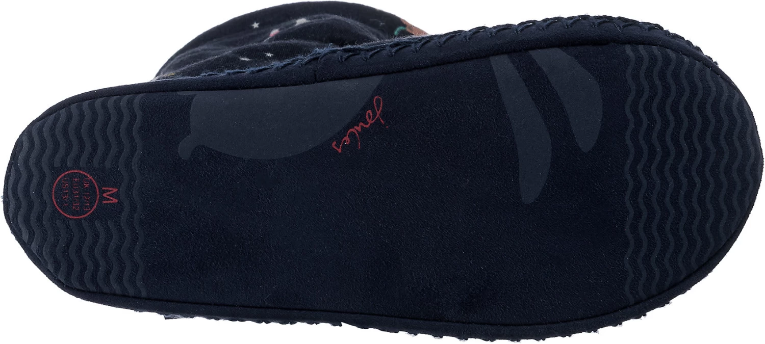 Gemütliche Begleiter beim Spielen im Kindergarten, im Hort oder daheim: die Hausschuhe von der Marke Tom Joule. Die Schuhe punkten mit einem Futter aus Polyester. Es handelt sich um ein Modell zum bequemen Hineinschlüpfen. Das textile Obermaterial unterstützt das Design des Paares.