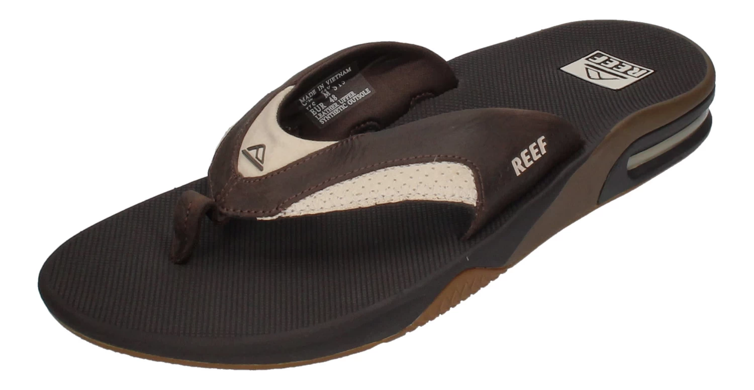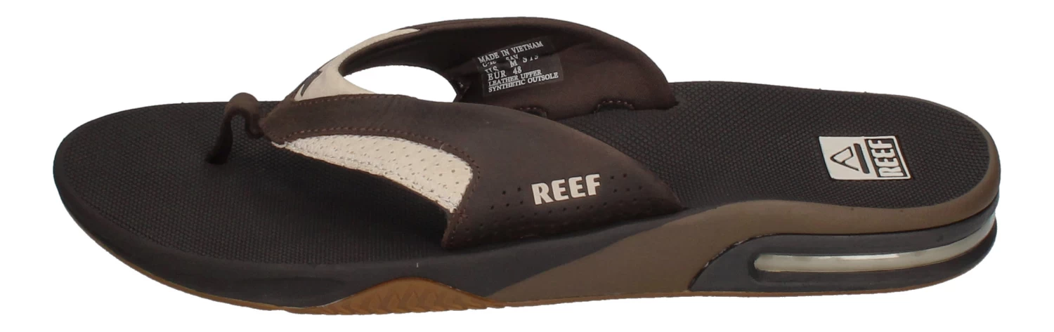 Der Zehentrenner LEATHER FANNING 2156 in white brown ist stylisch, praktisch und gemütlich zugleich. Softes Leder an den Riemchen und die flexible Gummisohle mit 360°-Airbag im Fersenbereich zeichnen diesen Schuh aus. Besonders praktisch ist der in der Sohle eingebaute Flaschenöffner. Dieser stylische Zehentrenner passt nicht nur an den Strand sondern ist natürlich auch City-tauglich.